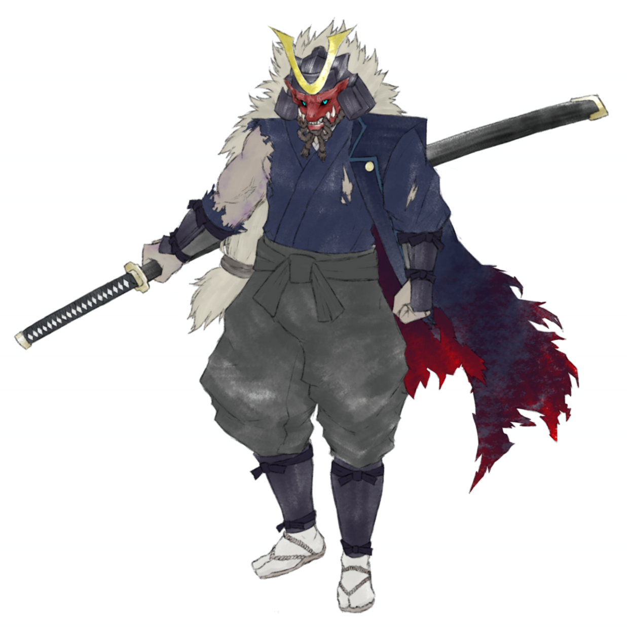 かつて異世界の侍大将だった男のアンデッド。覚えていることと言えば、自分には愛すべき嫁と10人の子供がいたことと、自分が何者かによって謀殺されたこと。記憶に残った家族らの身を案じ、しかしこの骸を晒す訳にもいかず、守りの剣にも阻まれるため、家族に会うために生き返ることを望んでいる。